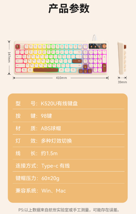 航世/B.O.W K520U 键盘 机械手感有线键盘 单位:个