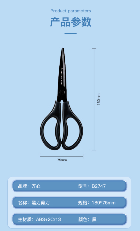 齐心/COMIX 53755 剪刀 黑刃剪刀 单位:把