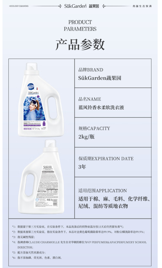 蔬果园/SUKGARDEN SGY0520 多用途清洁剂 蓝风铃香水柔软洗衣液 单位:盒