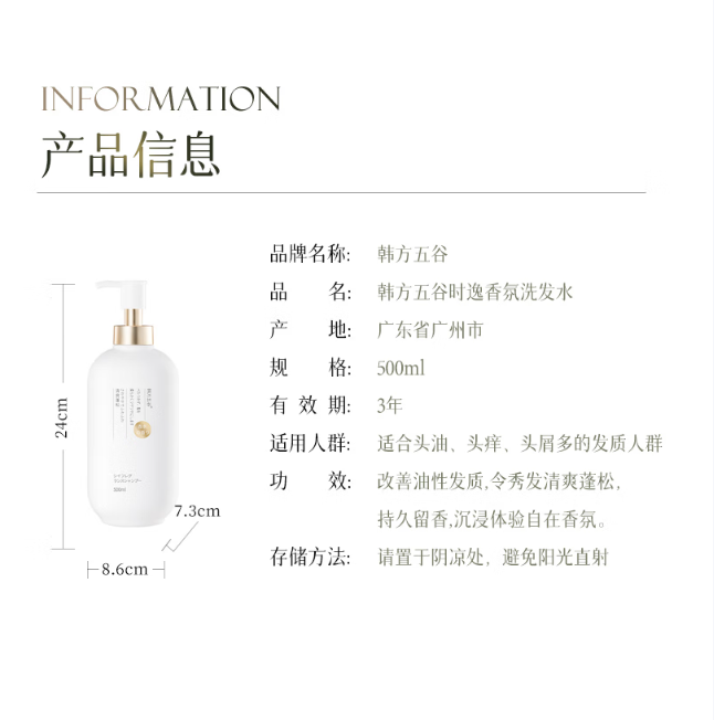 韩方五谷/FIVECEREAL\'S HFST228 洗发水 洗发水 时逸香氛洗发水500ml 单位:瓶